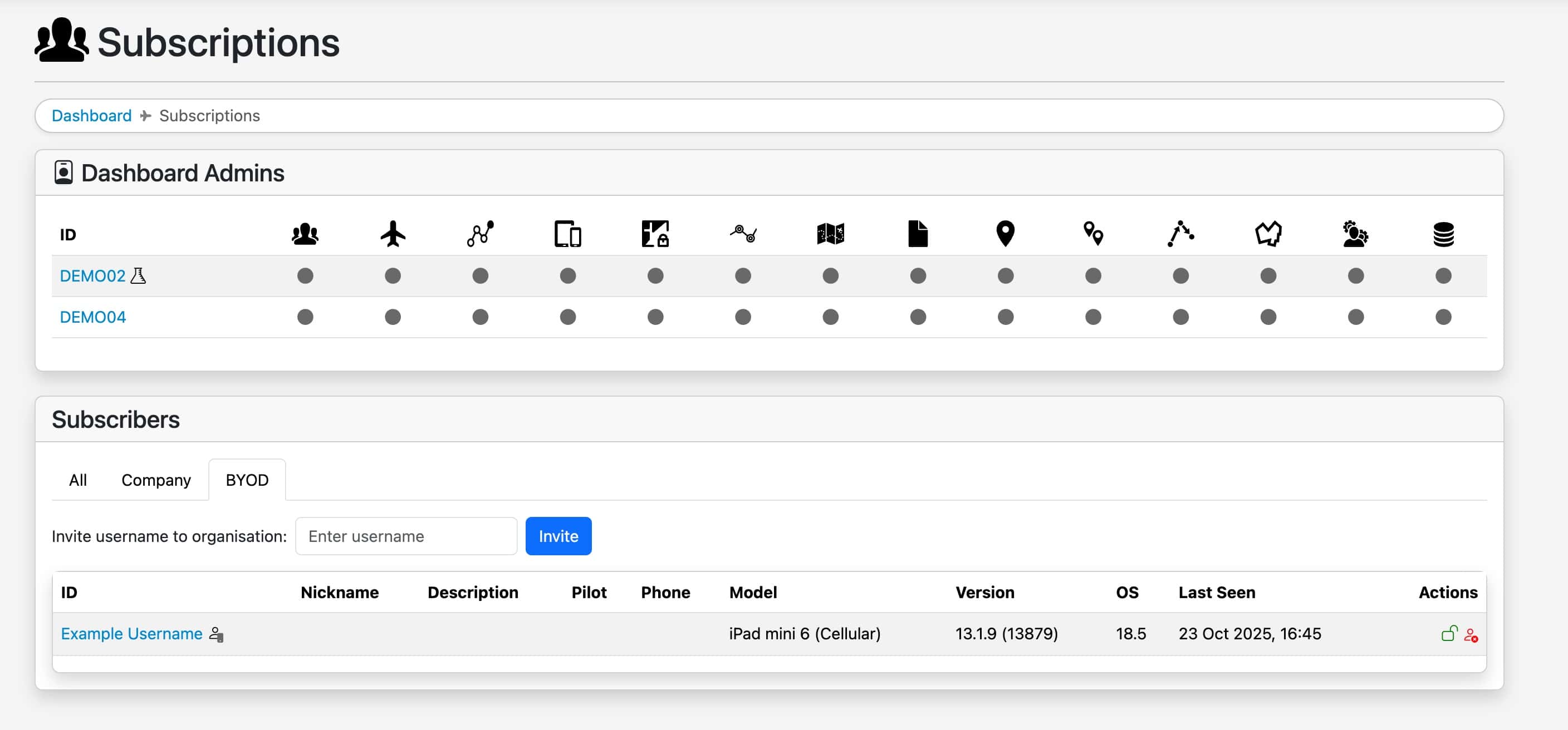 To add or remove pilots with their own OzRunways subscription, ie “BYO device”, simply follow these steps: